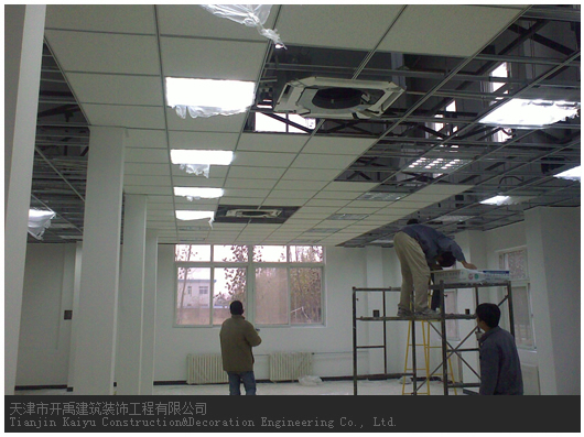 (9)辦公室吊頂不(bù)管撥取石棉闆或礦棉闆,都(dōu)要(yào)用(yòng)螺絲拉杆垂挂,這(zhè)麽